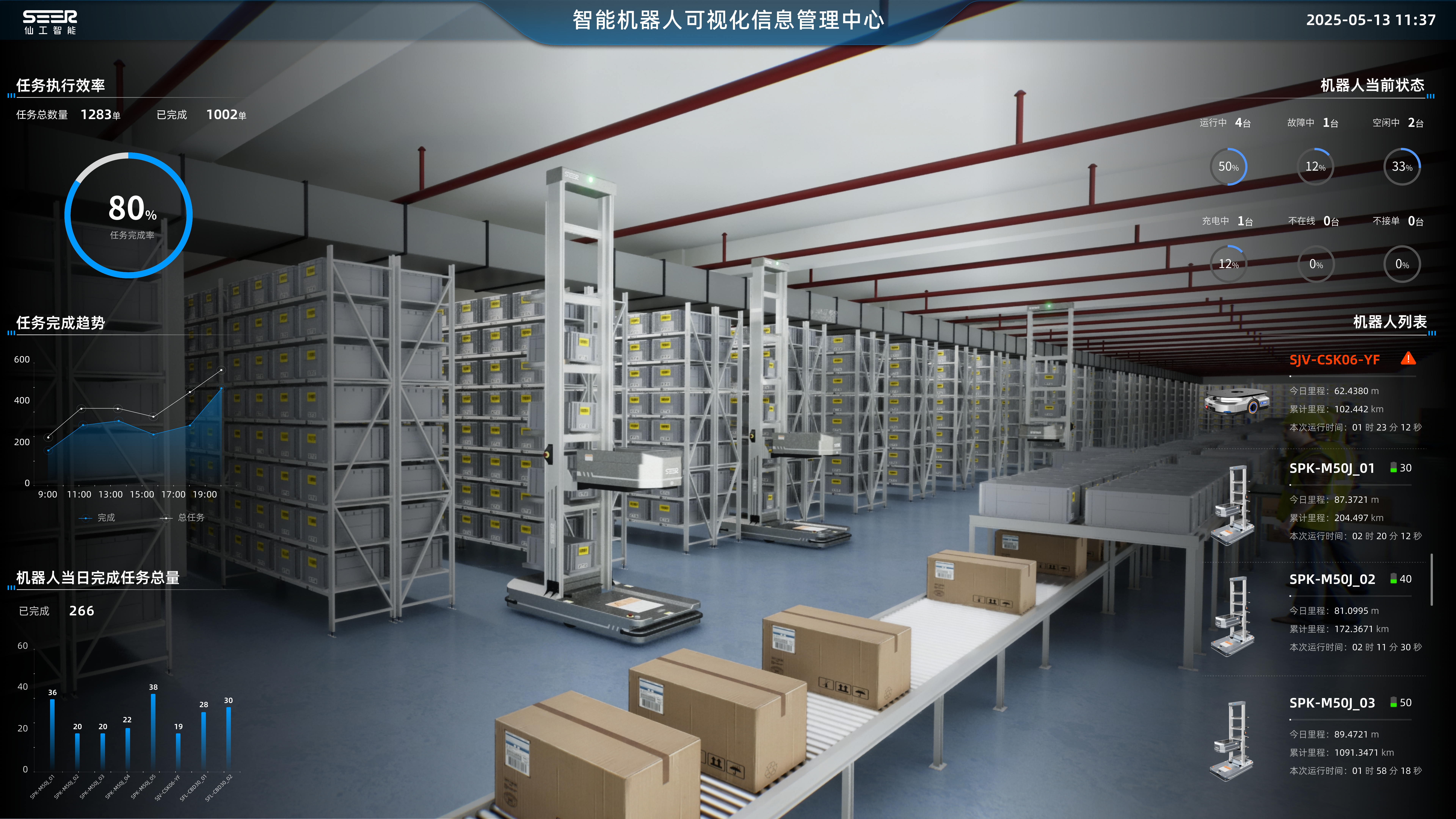 2. 分阶段试点验证:基于仙工智能控制系统的开放性,客户可以先从搬运、堆垛或拣选环节切入。在局部环节跑通流程、验证价值后,再利用同一套底层系统平滑扩展至全工厂。